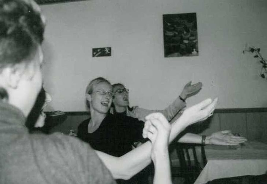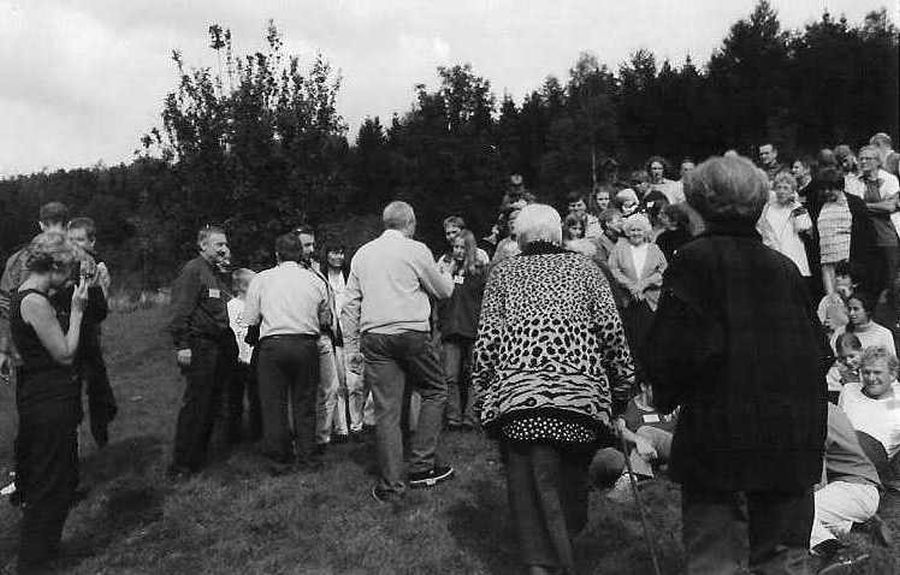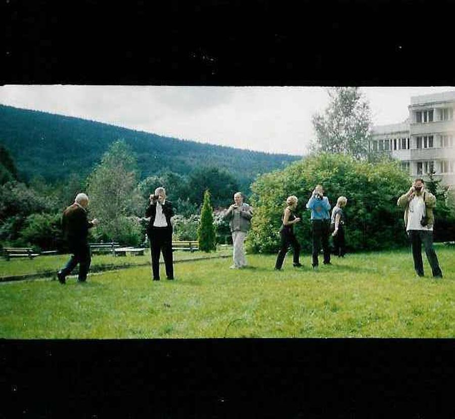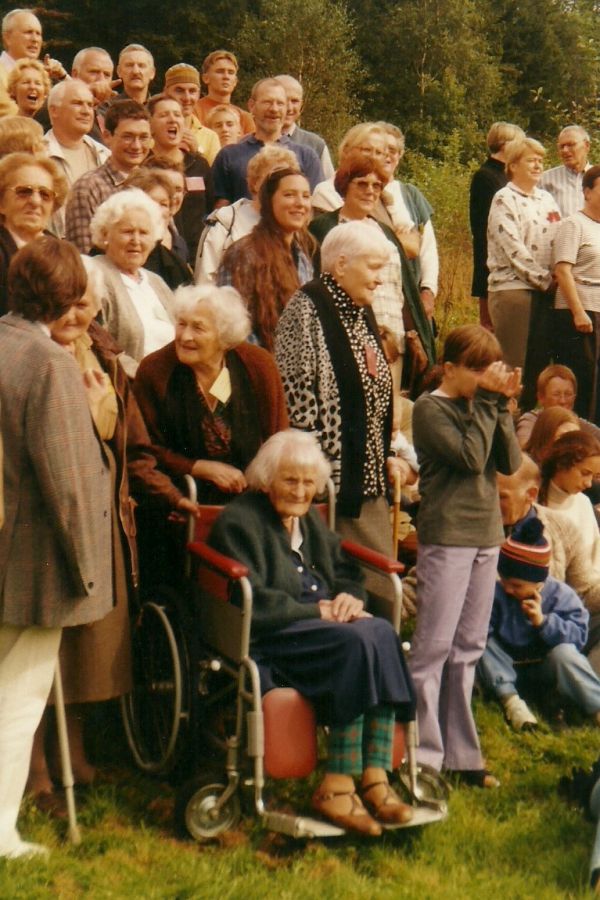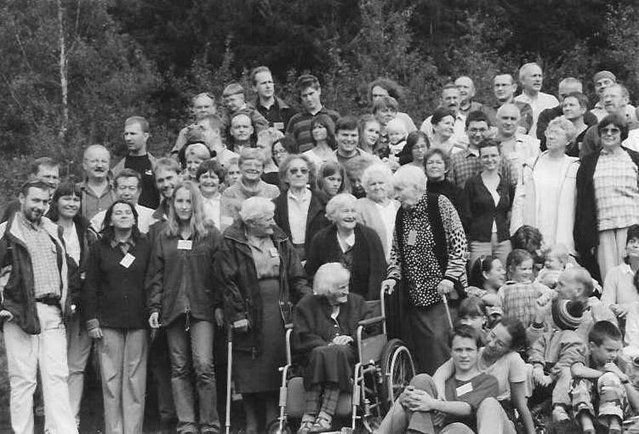 Na zjazd ciocia Stasia przybyła z wózkiem inwalidzkim. Szybko okazało się, że chętnych do wożenia Cioci jest bardzo wielu młodszych i starszych. Mimo że wózek jak twierdziła przywiozła tylko na wszelki wypadek to cały zjazd na nim przesiedziała dając się wozić. Podziwiam Cioci odwagę, ponieważ niektórych fantazja ponosiła i nie bacząc na pasażera uprawiali istne rajdy. H. N. (10.09.2019) |