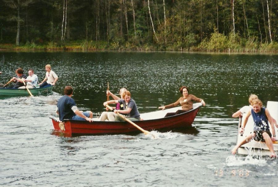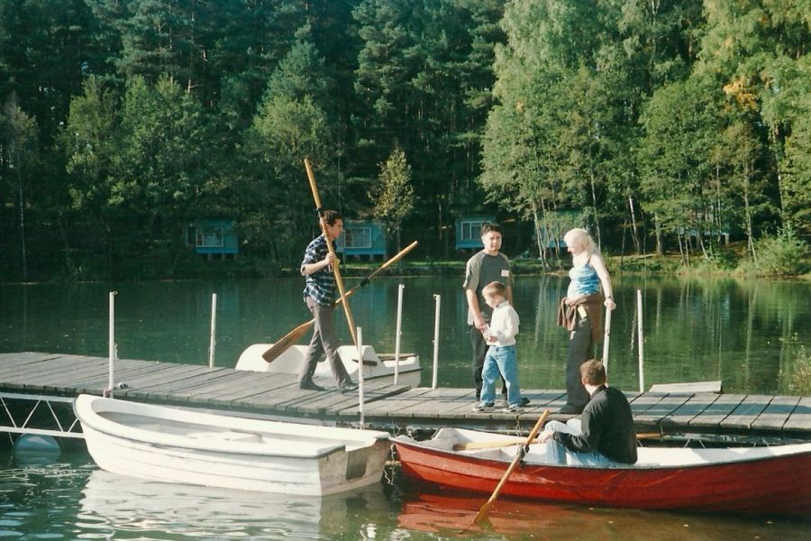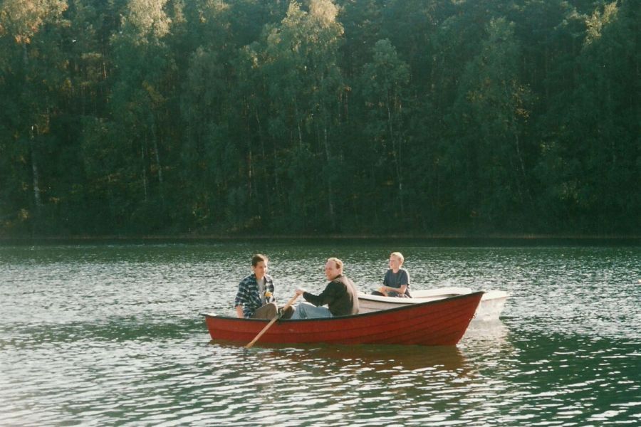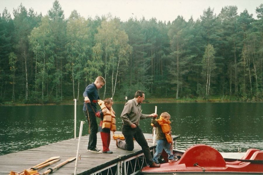 Zachowane w pamięci: W Stawiskach po niedzielnym obiedzie Marek Szczepaniak chciał swoją córkę – Idę wrzucić do oczka wodnego. Z pomocą przyszła ciocia Zosia Ładomirska (Piotrowa) i efekt był taki, że Marek wylądował w wodzie i zbił sobie pupę. R. N. (23.09.2017)